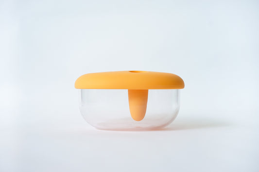 Monchi’s snap-on lid pairs with a shock-proof container to keep snacks safe, sealed, and spill-free.